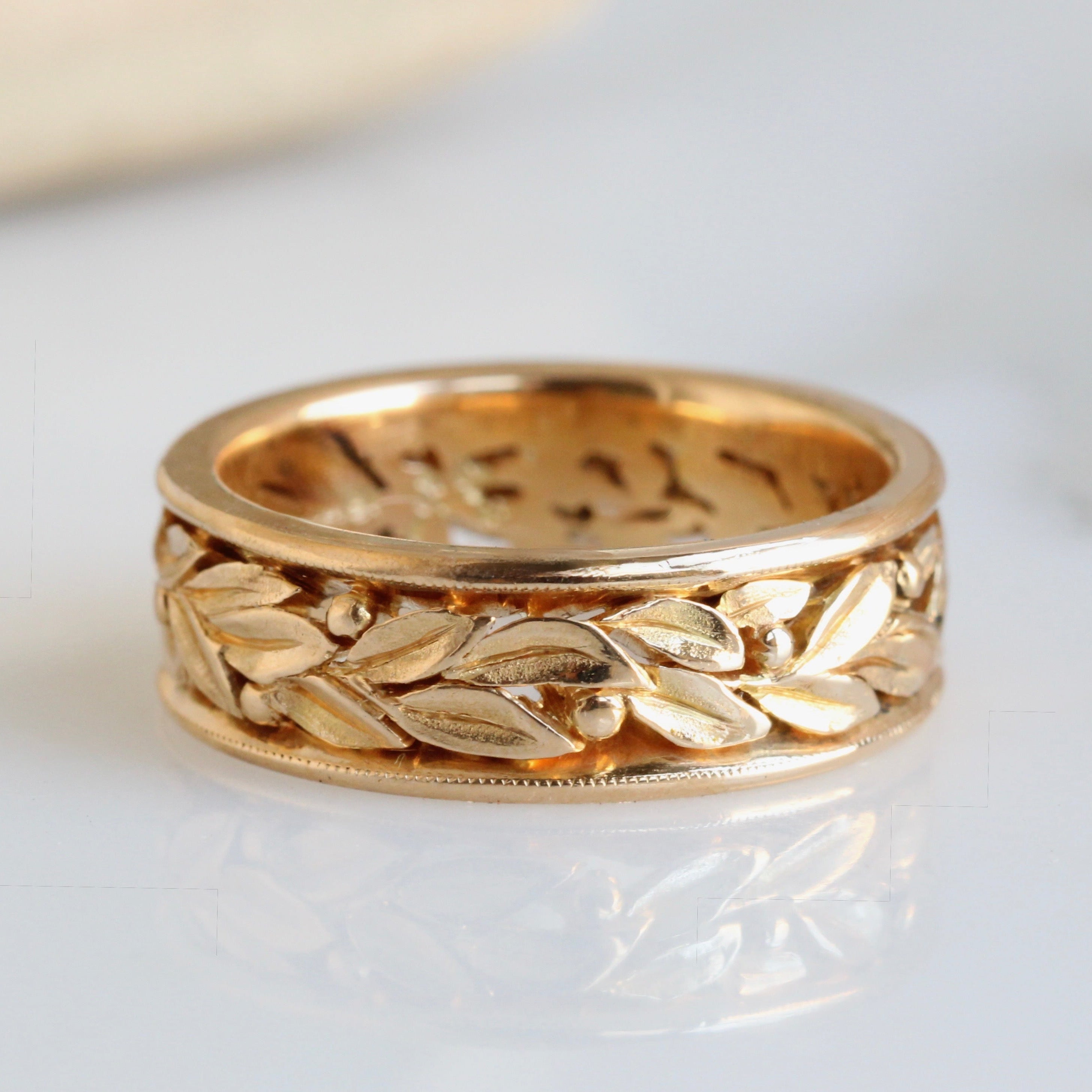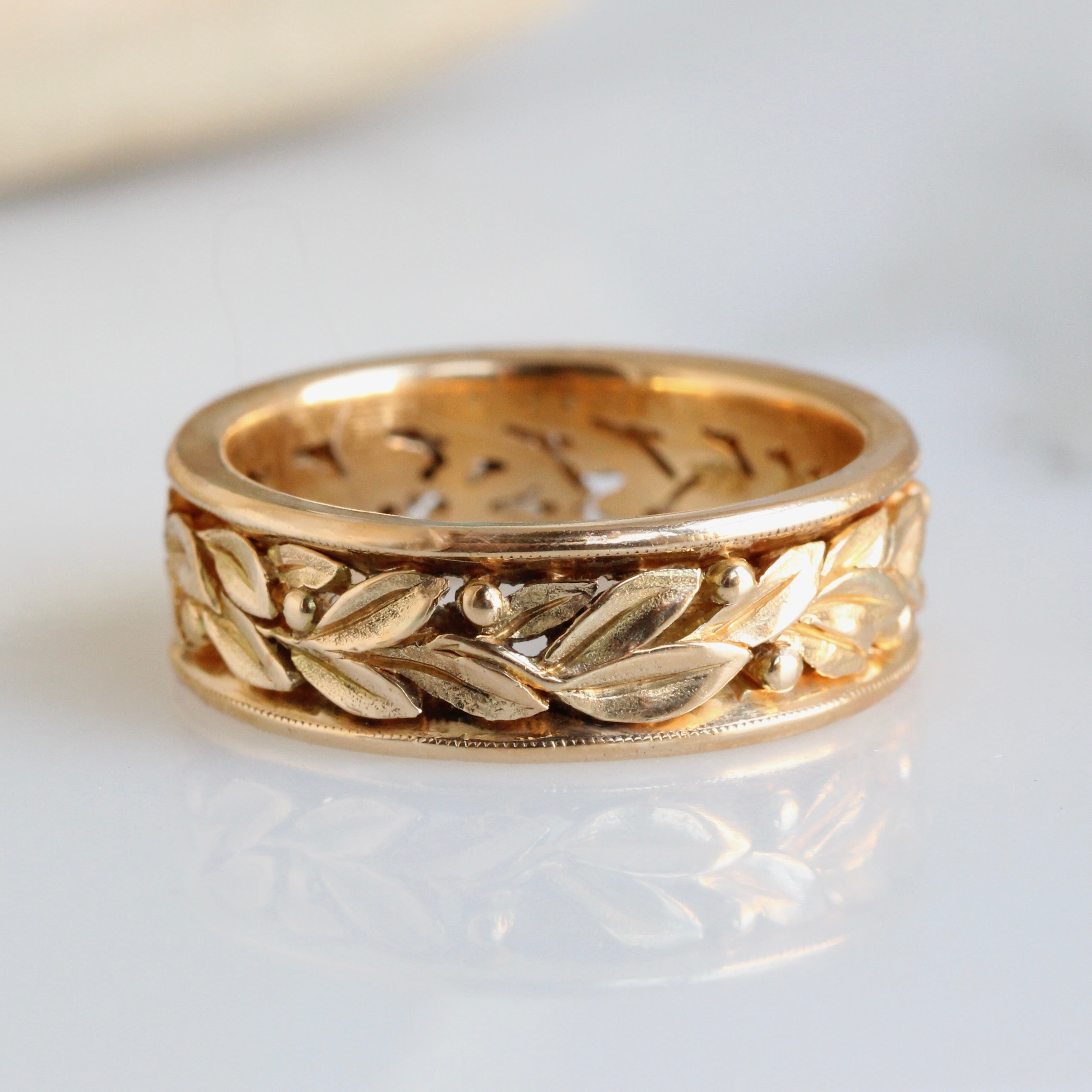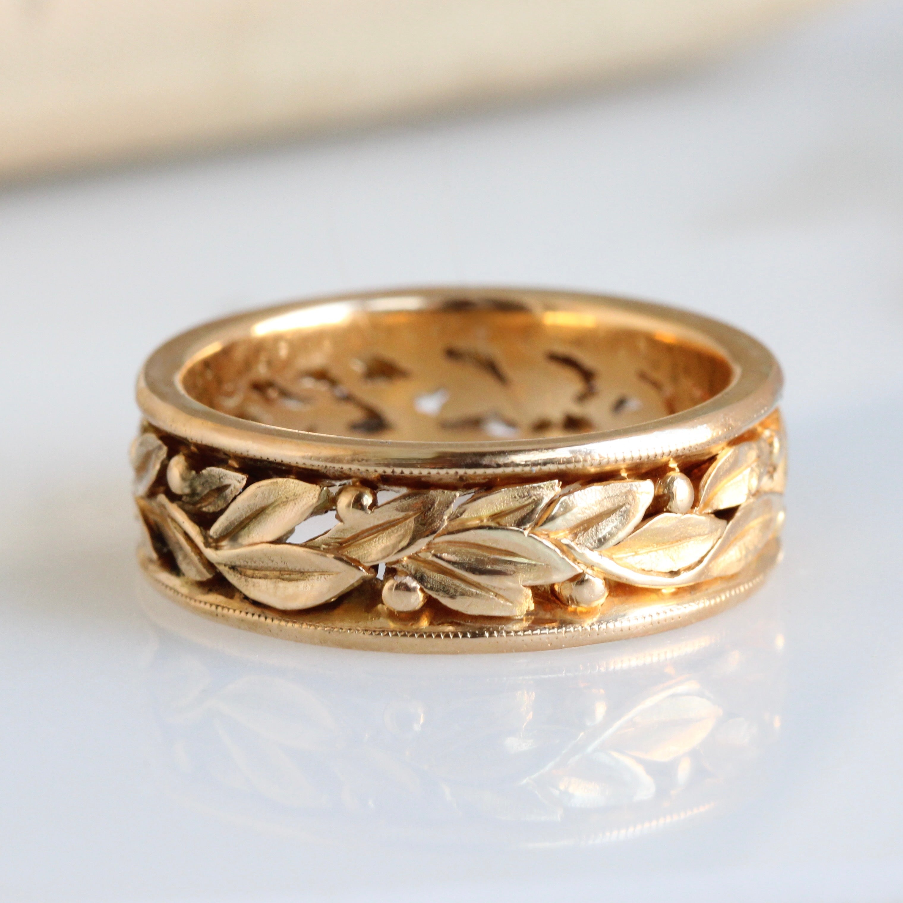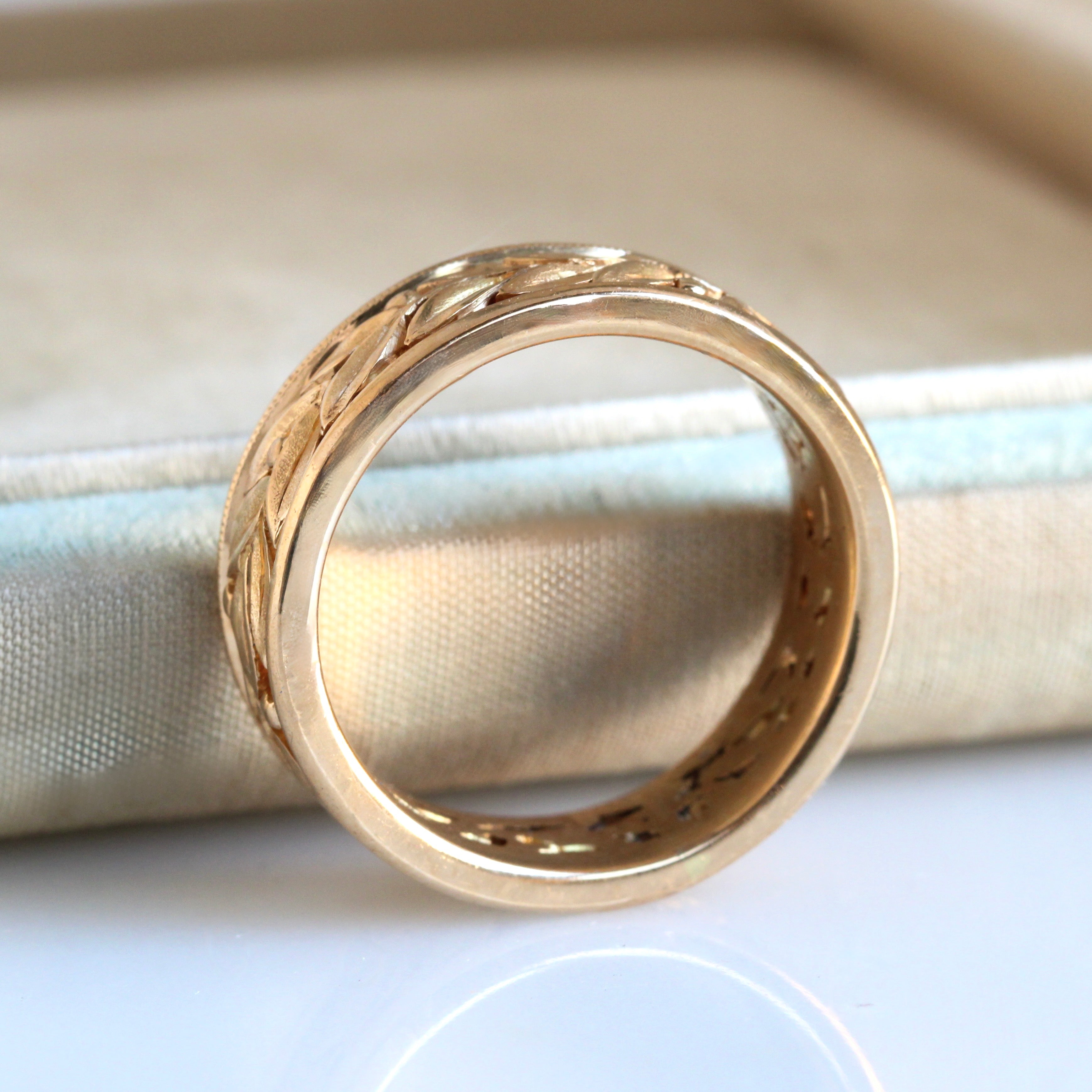 Vintage Carved Laurel Leaf Eternity Band in 18k