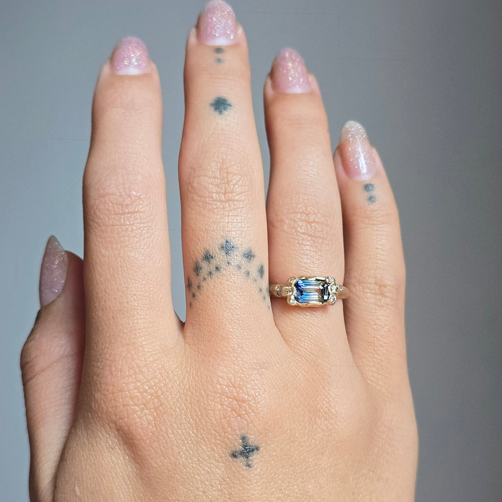 We work with a gemstone dealer specializing in ethical mine-to-market sourcing for our custom colored gemstone pieces. This stone is completely natural without any type of enhancement, and was cut from fair trade sourced material originating in Sri Lanka.