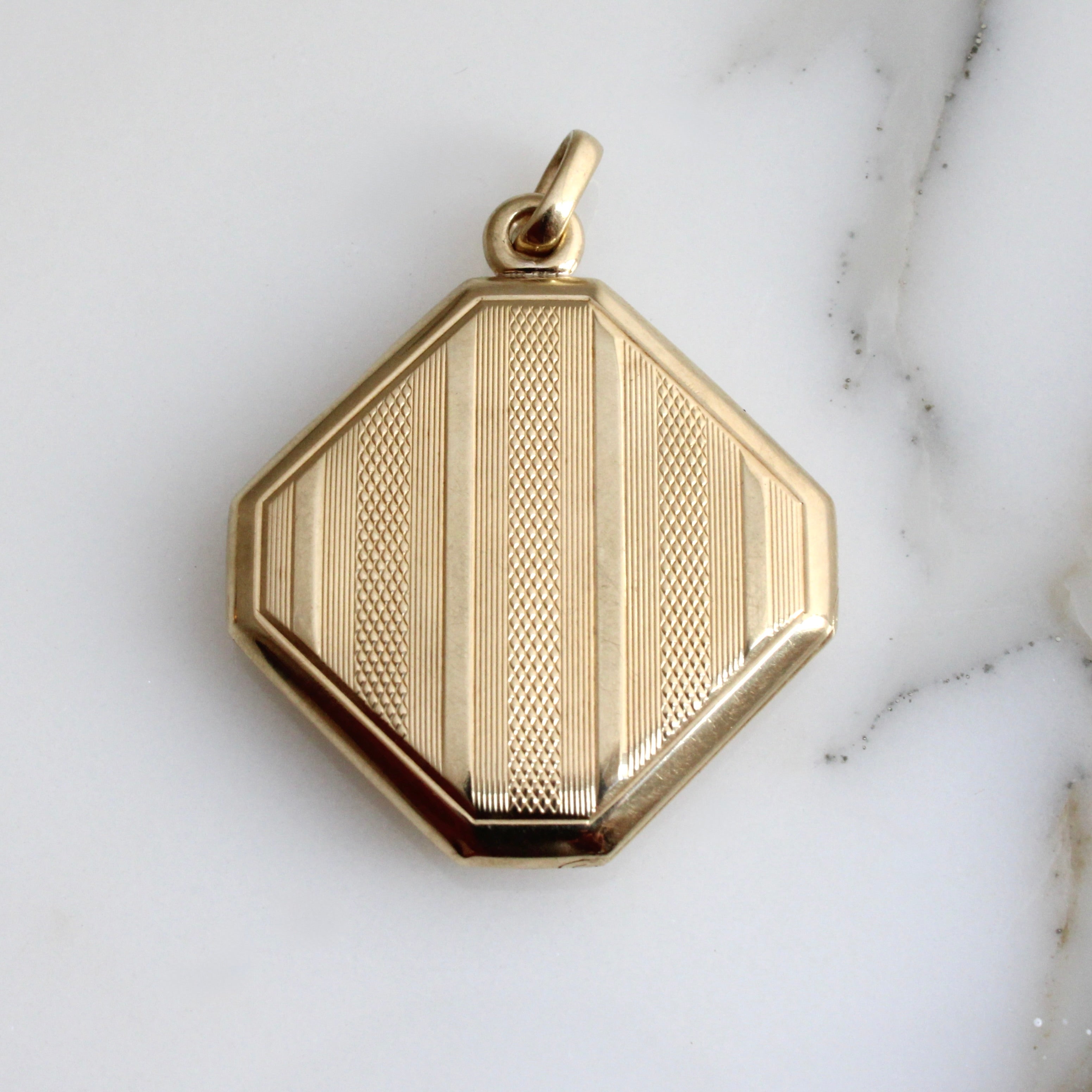 Edwardian Diamond Locket with Engraved Pinstripes