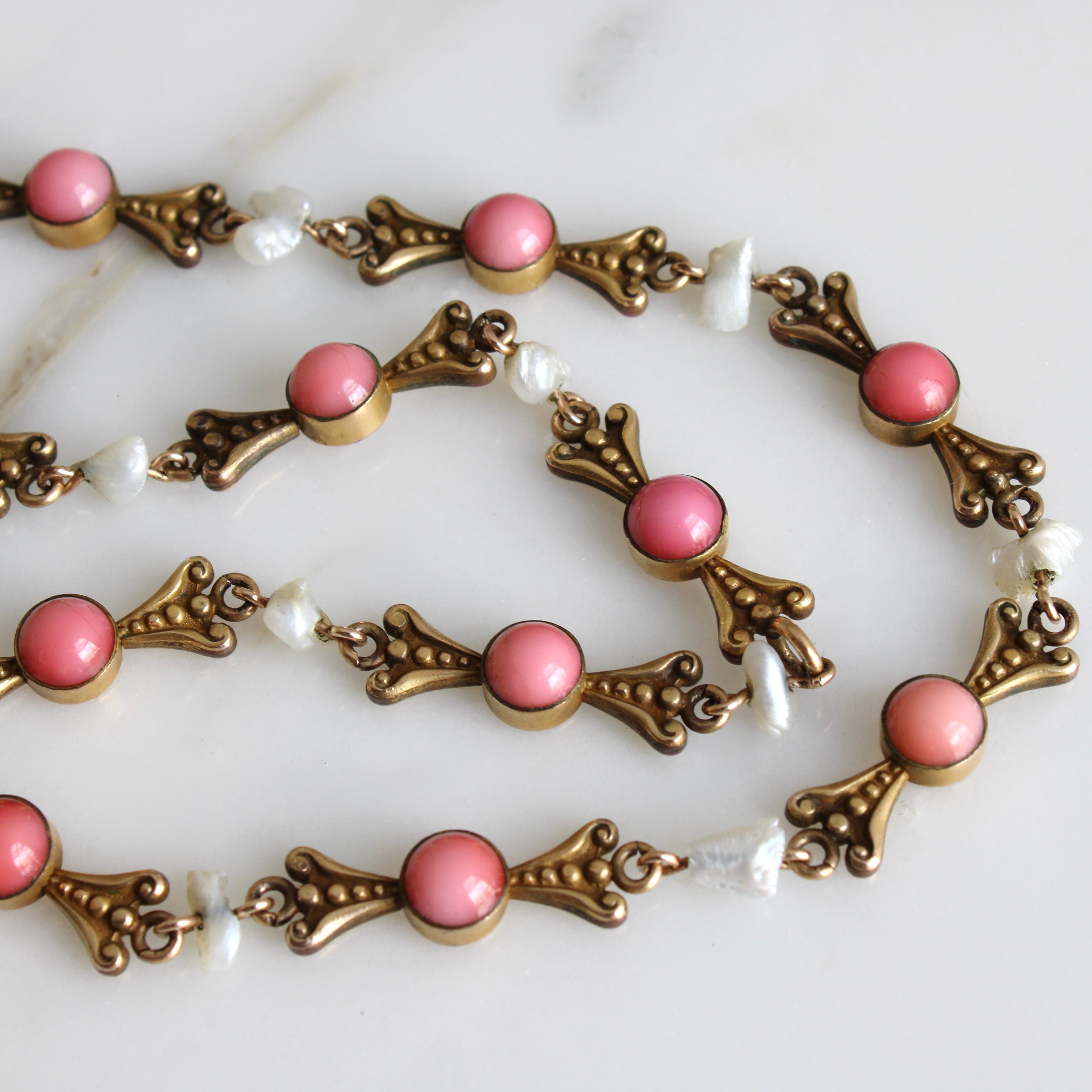 Antique Cameo, Pearl & Coral Glass Necklace