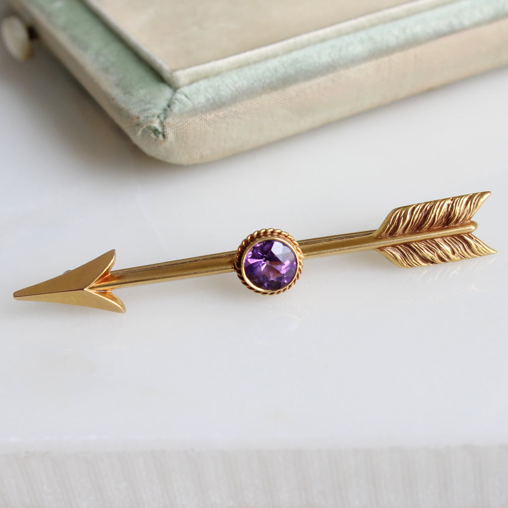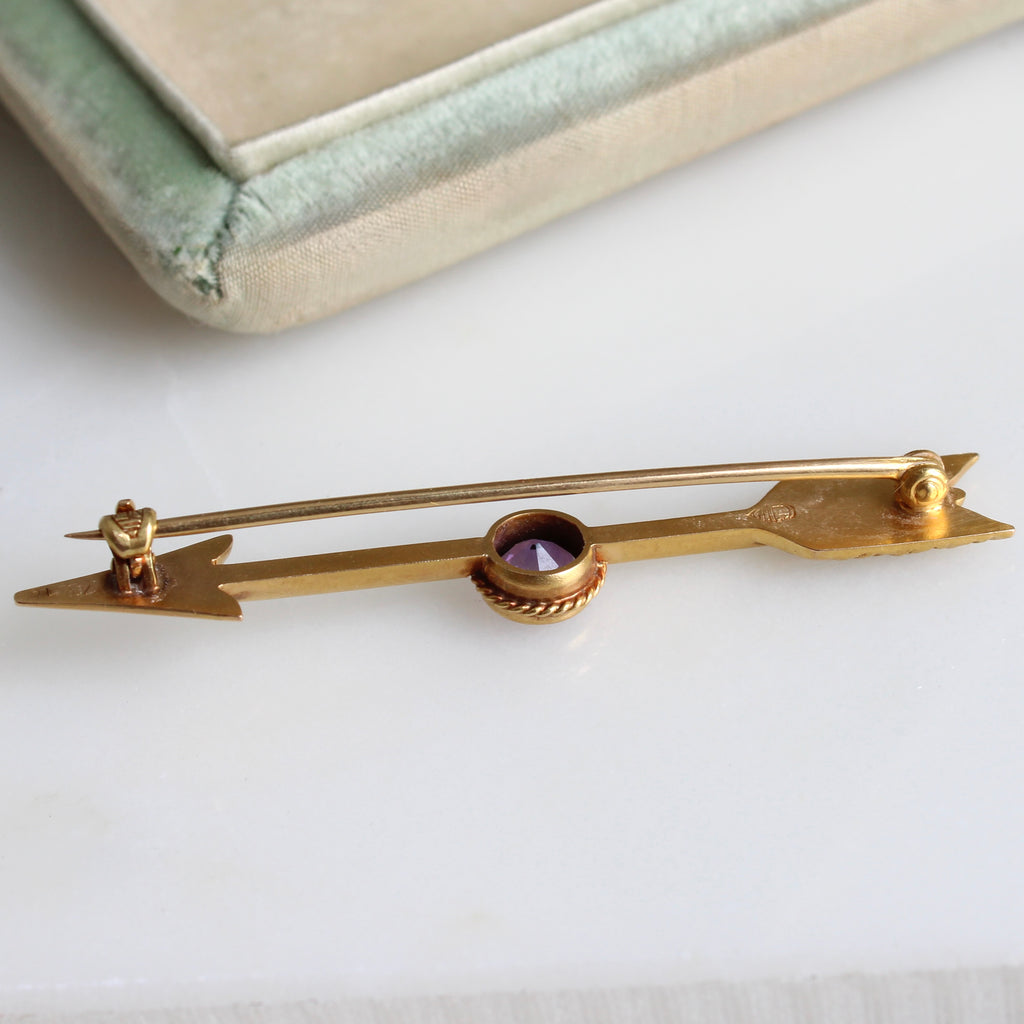 Antique Gold Arrow & Amethyst Brooch