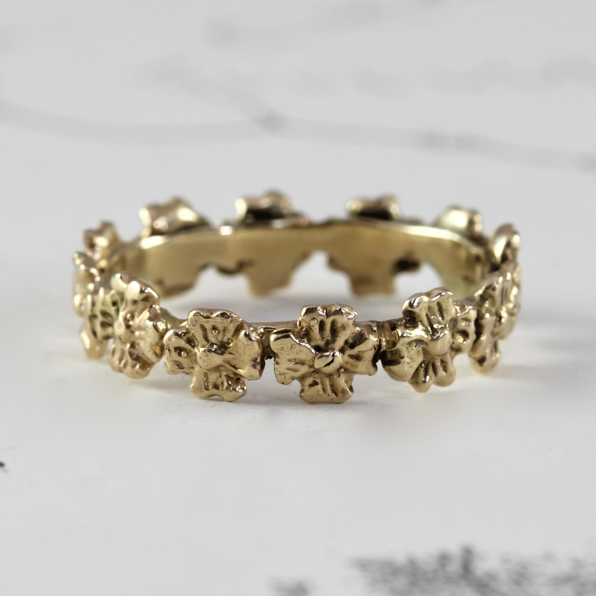 A sweet scattering of flowers across the finger, it's a fantastic stacking piece but works beautifully by itself as an interesting love token statement.